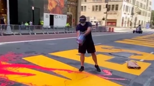 RED PAINT thrown on Black Lives Matter painted outside Trump Tower in New York City (VIDEO)