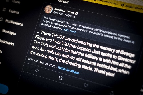 Twitter flags Trump tweet about Minneapolis protests for ‘glorifying violence’